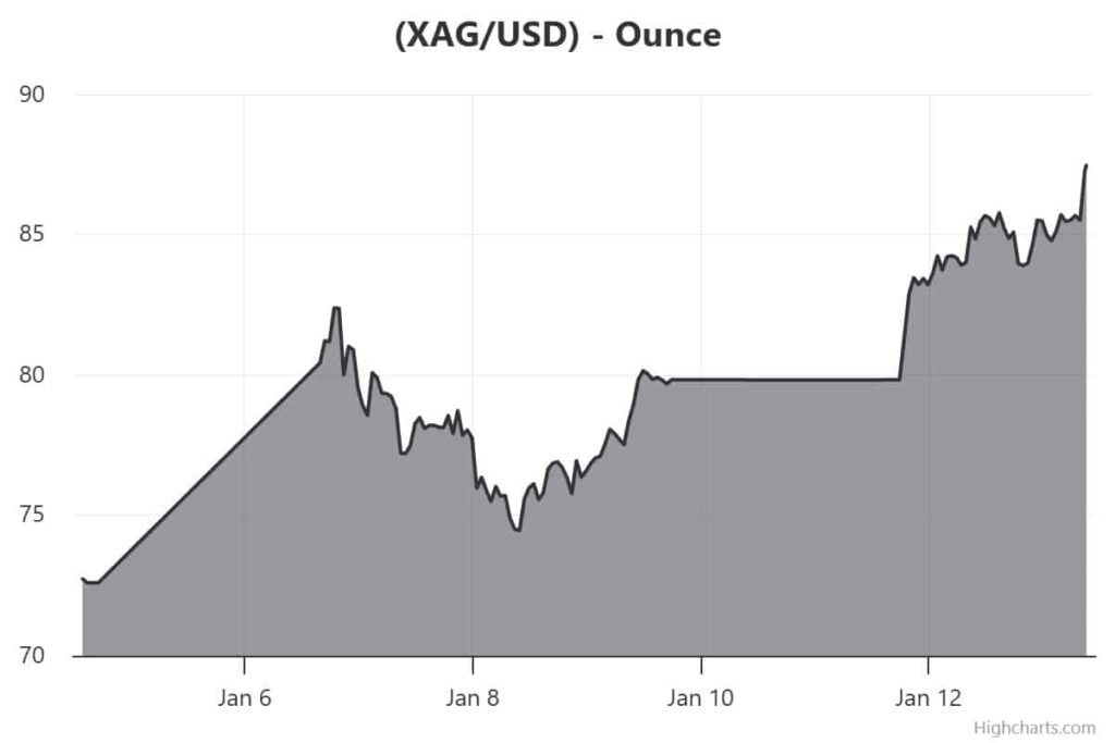 تظهر الحركة بوضوح في الأسعار. تجاوز الذهب 4600 دولار للأونصة واقترب، يوم الثلاثاء 13 يناير، من ذروة قاربت 4630 دولارا، وهو مستوى غير مسبوق، بينما ارتفعت الفضة إلى أكثر من 87 دولارا للأونصة خلال نفس الجلسة، مسجلة هي أيضا قمة تاريخية.